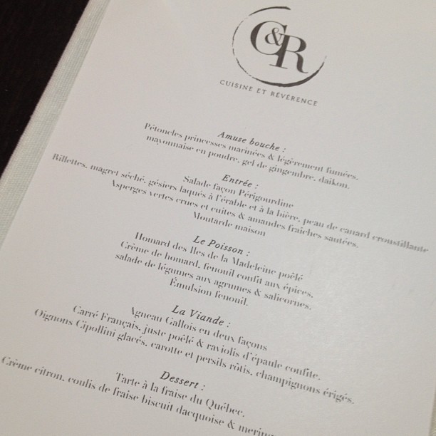 555265_155300167994328_1366173368_nRécemment j’ai eu l’immense bonheur de rencontrer Gilles Tolen, chef à domicile pour Cuisine & Révérence. Si vous suivez un peu la scène gastronomique montréalaise, vous connaissez probablement déjà Gilles qui officiait jusqu’à tout récemment au Decca 77 et qui a également été le second de Charles-Antoine Crête à la Brasserie T.  Mais avant ça, il est passé par Le Cinq, le restaurant triple étoilé Michelin de l’Hôtel Georges V à Paris (oui, oui!!) et Le Jules Verne, resto gastronomique situé au 2e étage de la tour Eiffel. Bon, je crois qu’après ça, pas besoin de m’étendre davantage sur sa bio pour vous convaincre qu’on a affaire à un vrai professionnel qui a déjà plusieurs années d’expérience derrière le tablier!