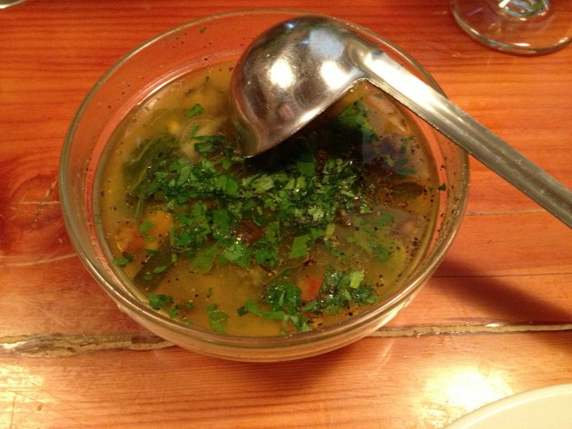 - Soupe requin, canard et légumes de saison servi avec un magnifique pesto basilic