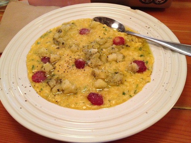 - Risotto à la courge, pomme, sauge, reggiano et saucisson maison