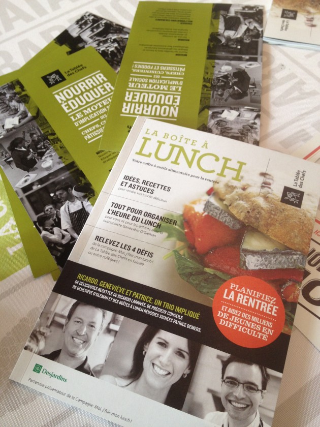 Comment participer? Rien de plus simple! D’abord, il vous suffit de vous procurer la publication La boîte à lunch qui est en vente dans tous les Jean Coutu du Québec au prix de 3$. Vous y retrouverez non seulement le cadre officiel de la campagne Moi, j’fais mon lunch! mais aussi une multitude d’idées, d’astuces et de recettes, spécialement élaborée pour la rentrée. Pour chaque tranche de 5 publications La boîte à lunch vendues, vous permettez à un jeune de suivre une formation culinaire dans un centre jeunesse ou dans une école en milieu défavorisé par notre équipe de chefs impliqués. Génial!