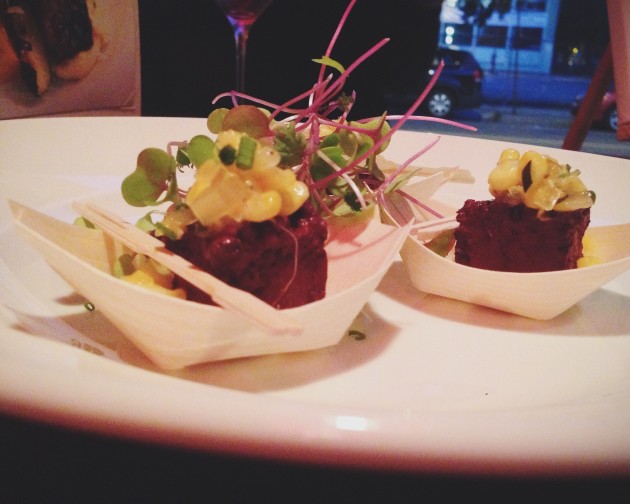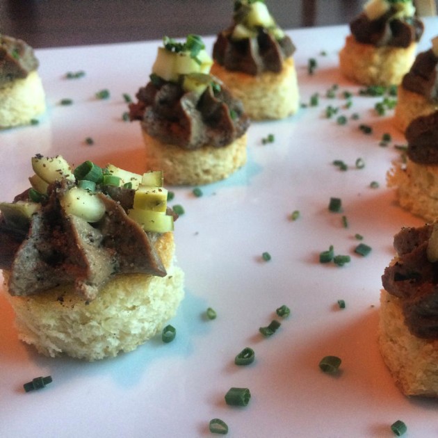 La semaine dernière j’ai donc assisté à un cocktail de (ré) ouverture médiatique, où ils ont remanié les ingrédients des plats principaux pour en faire des petites bouchées.
